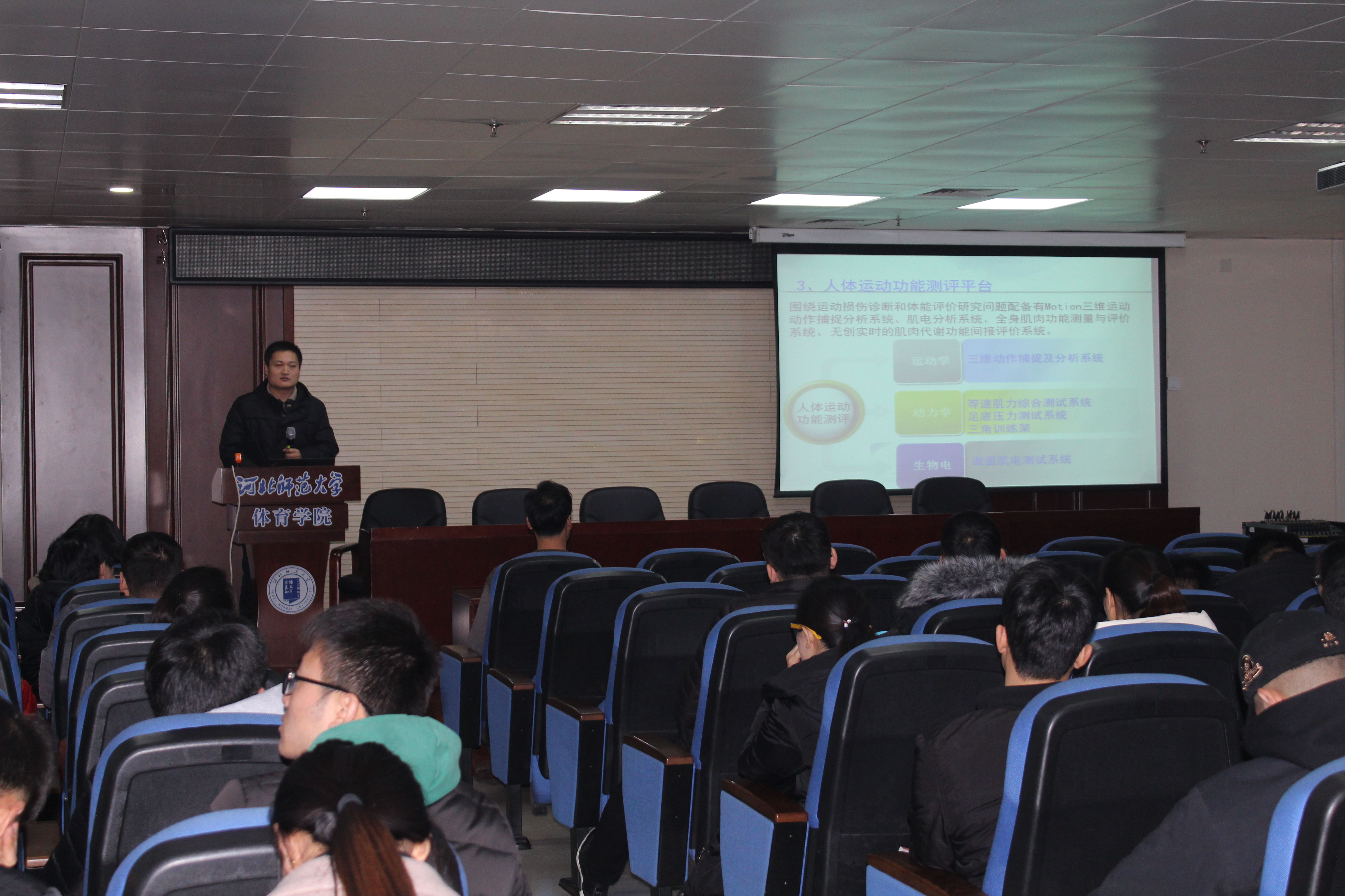 12月21日上午9:00,麻豆社 在学生讲堂举行了第四期学术沙龙活动暨河北省人体运动生物信息测评重点实验室功能介绍。实验室霍洪峰老师应邀作报告。部分教师和一年级研究生参加了本次学术交流活动。