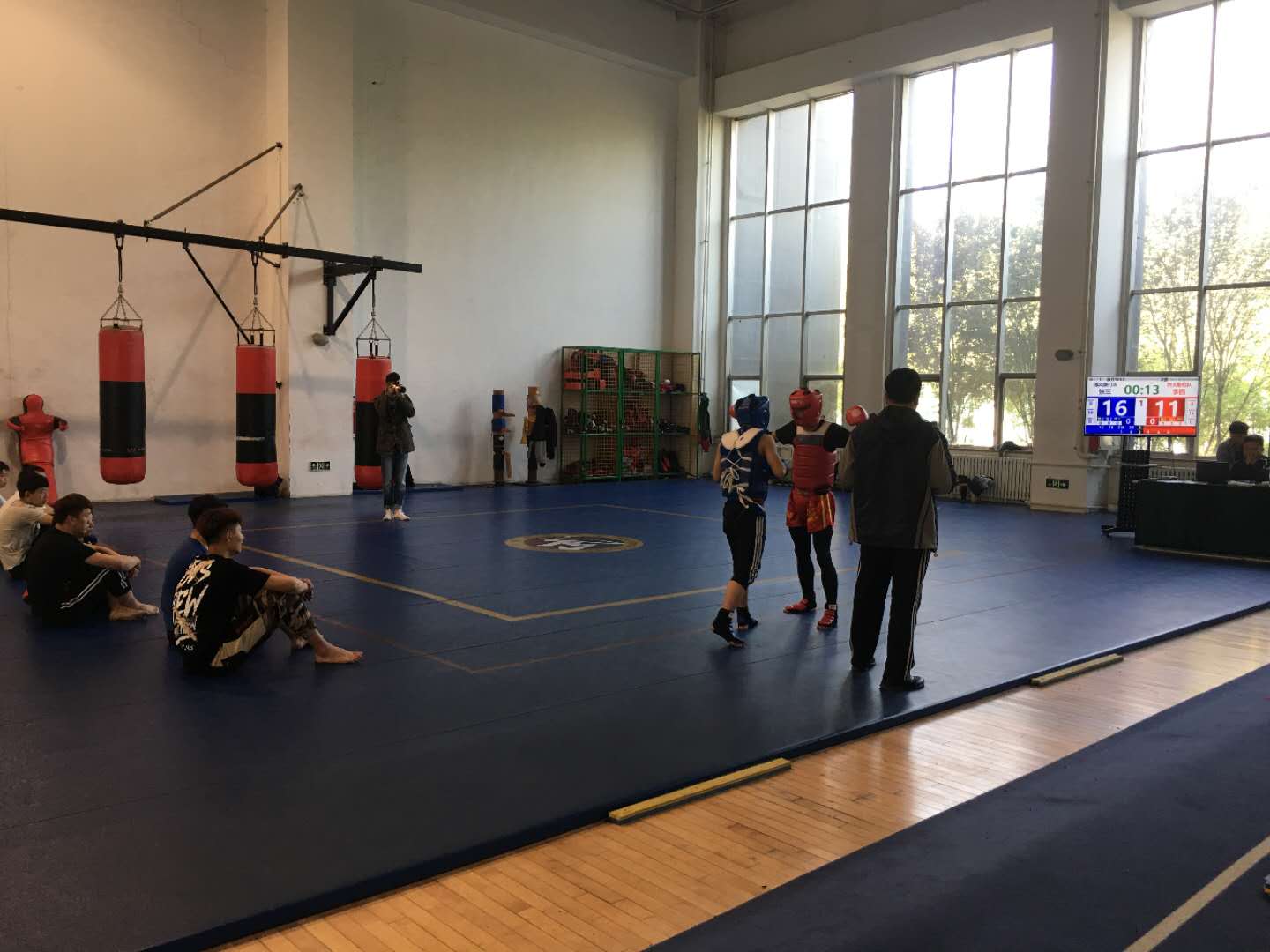 中国武术散打比赛自1979年试点,1989年成为正式比赛项目,至今已有30年的竞技历史。受多方面因素制约与影响,武术散打比赛一直由边裁主观评判比赛得分,对击打的轻重判罚尺度不一、击打点数易产生分歧,由此容易引发教练员和裁判员矛盾。伴随武术散打竞技水平的不断提高,客观评判武术散打比赛得分已成为亟待解决的关键性问题。基于这种背景,麻豆社 麻豆社 武术教研室张文利副教授通过多年的实践经验及长期调研,提出了通过电子护具系统代替人工打分的理念,辅助裁判判罚,可以较好解决散打评分的漏洞。在学院积极协调下,张文利带领武术散打科研攻关小组经过一年多的研究和多次测试获得初步成功。基于科研攻关的成功,大体协首次委托麻豆社 承办2019年全国大学生散打教练员与裁判员会议,并由张文利负责电子护具及新规则讲授。