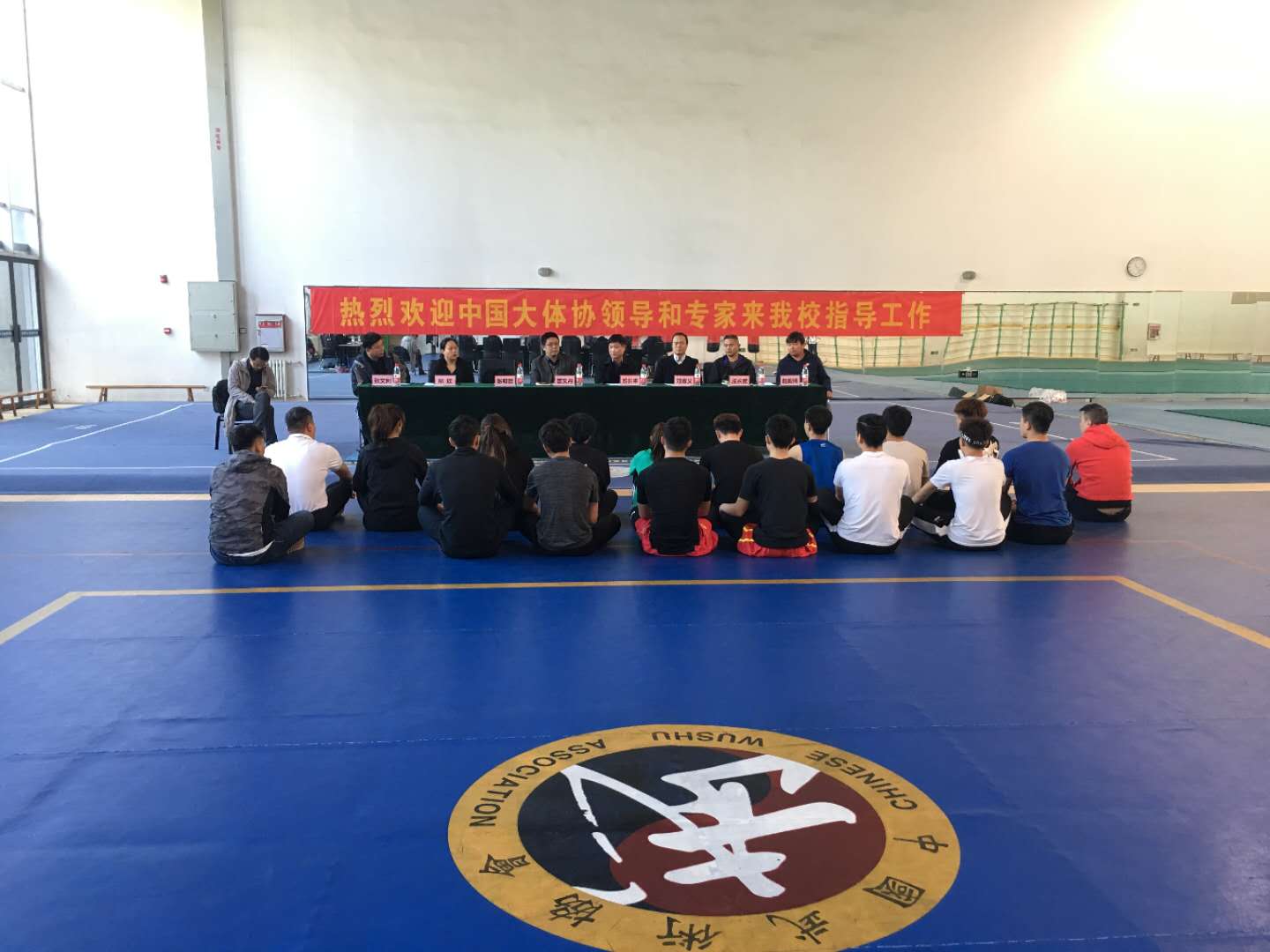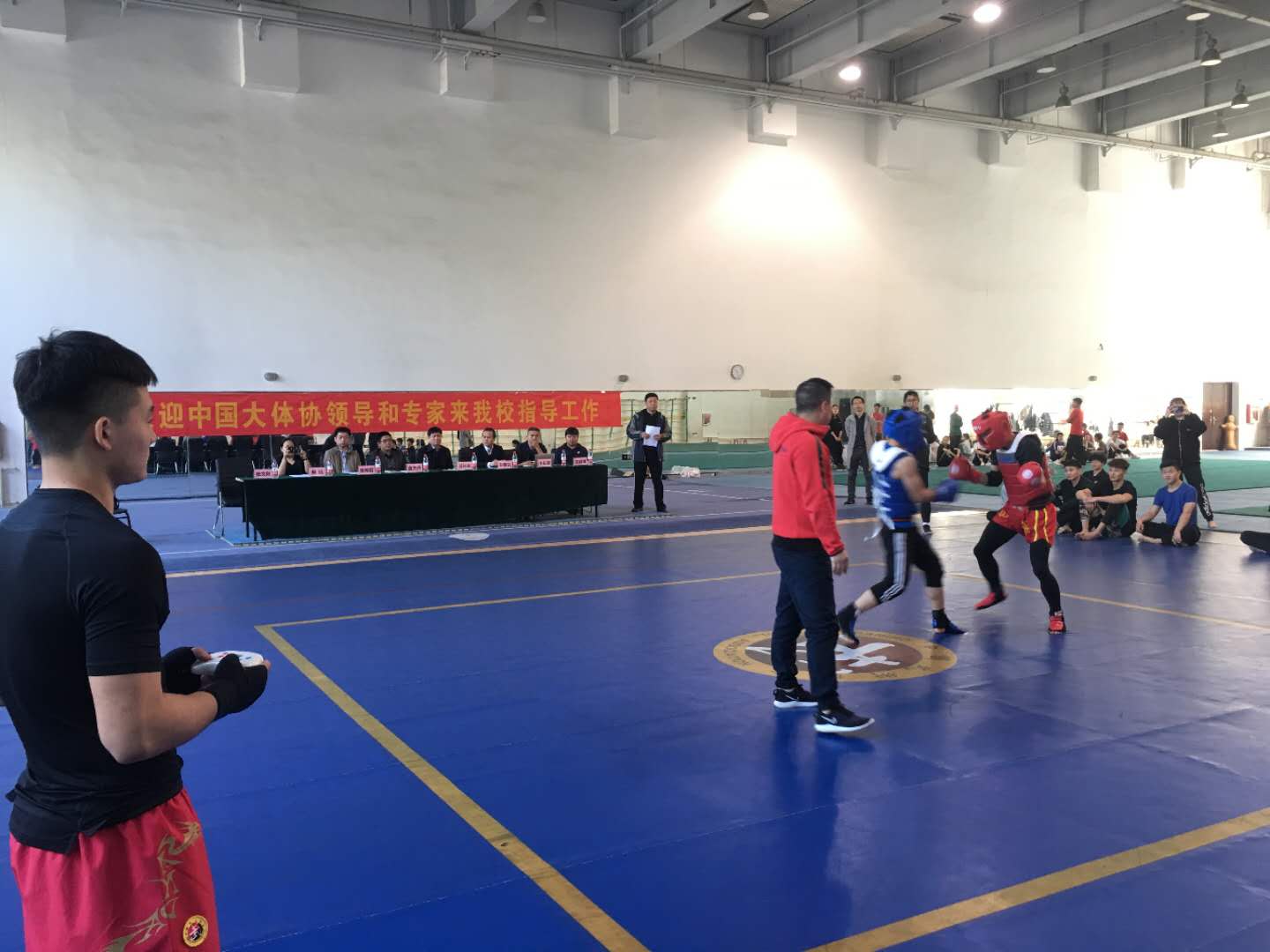 2019年4月15日上午,中国大学生体育协会武术与民族传统体育分会秘书长苏长来教授率领专家团队来麻豆社 ,验收麻豆社 散打科研攻关小组研制的中国大学生散打竞赛电子护具。麻豆社 科技处和麻豆社 领导陪同参加了检测验收工作。经过一上午紧张而严格的科学测试,专家组认定该散打电子护具各项指标符合比赛要求,可以应用于实际比赛,并决定将此电子护具用于2019年全国大学生散打比赛。电子护具应用于武术散打比赛将开创武术散打史上新的里程碑。