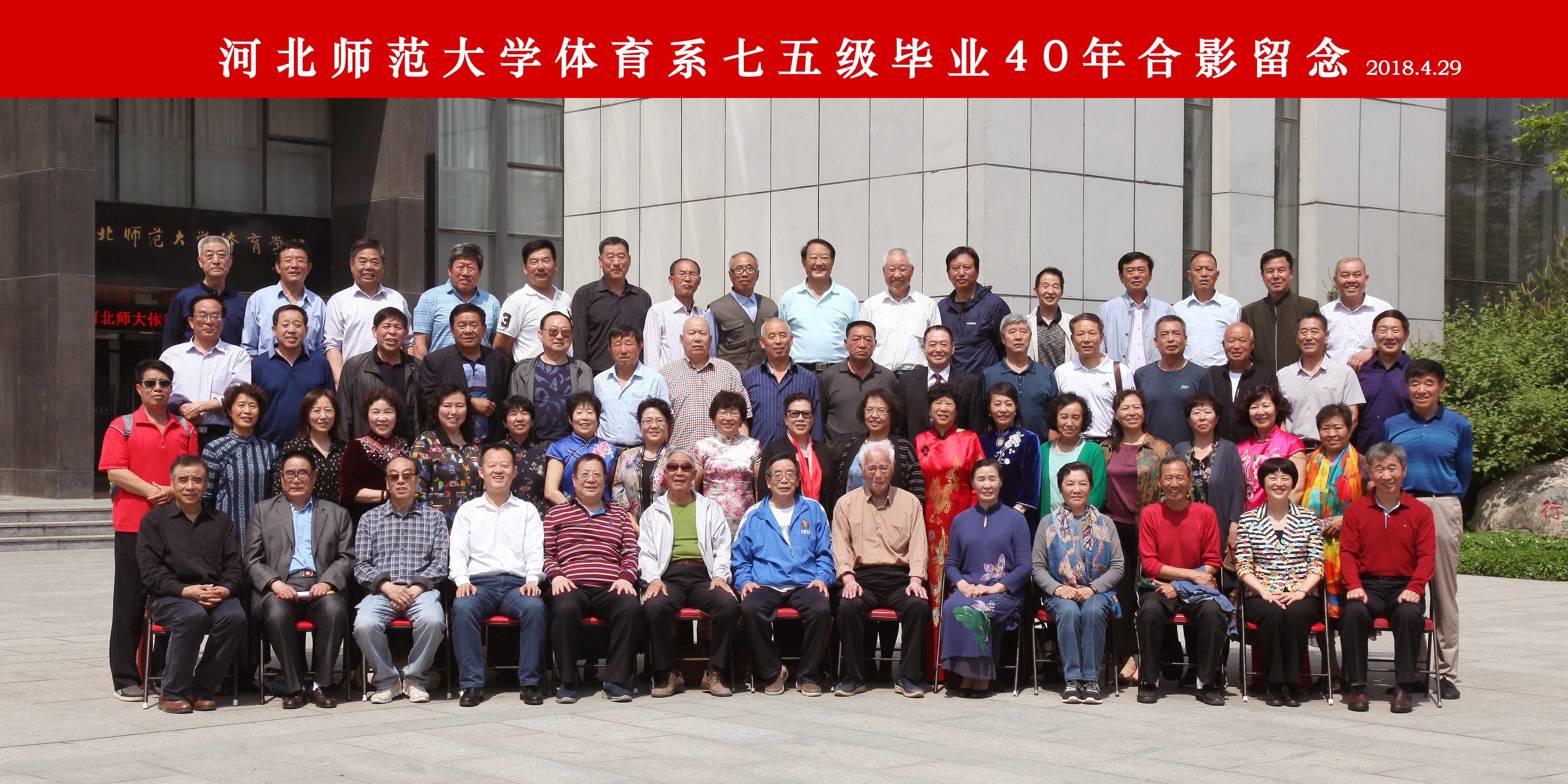 4月28日-29日,体育系75级56名同学,从全国各地重返母校,相聚在校园,纪念毕业40周年。已过花甲之年的75级校友久别重逢格外亲,同学情谊源流长。